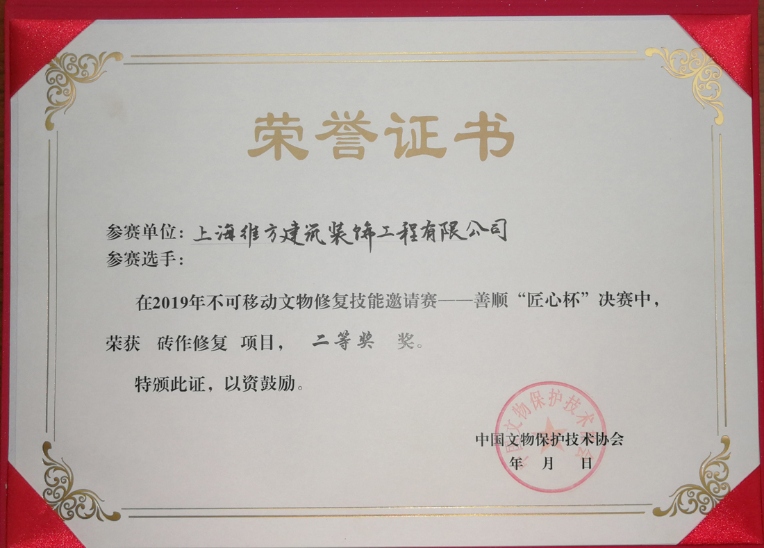 公司榮獲2019年不可移動文物修復技能邀請賽二等獎