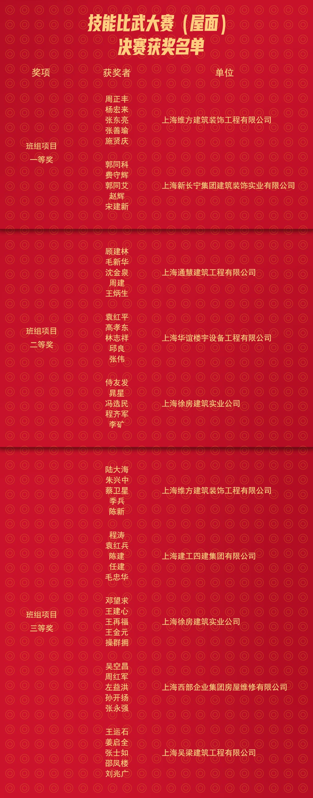 最終比賽獲獎名單出爐,上海維方建筑裝飾工程有限公司斬獲“修繕技術能手” 銀獎(個人)和班組項目一等獎、三等獎共計三個獎項。