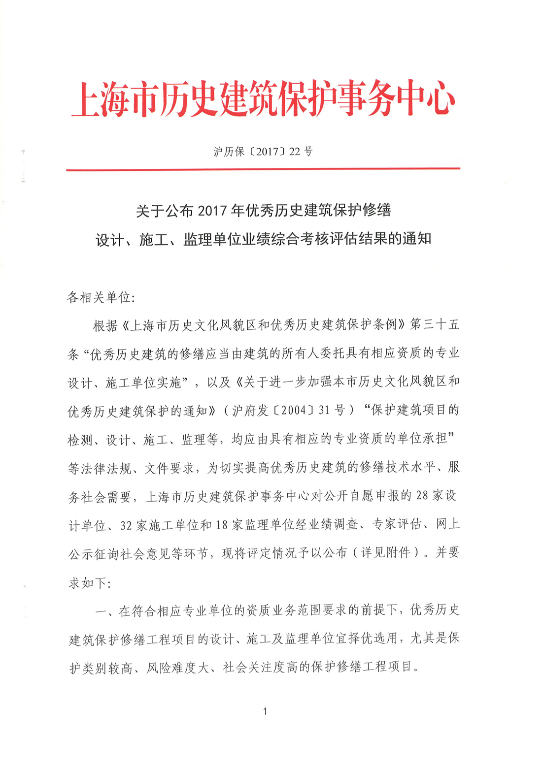 上海維方建筑獲評2017年優秀歷史建筑保護修繕優級單位